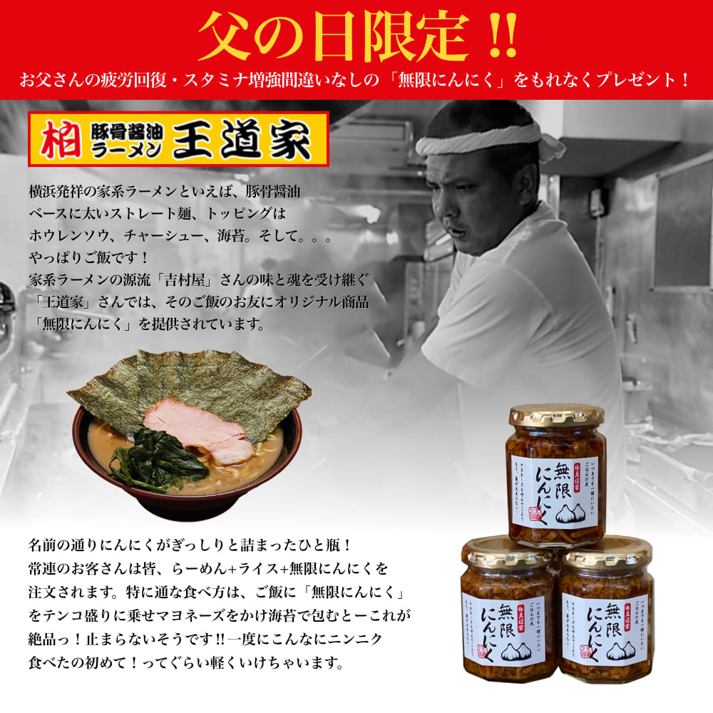 【無限にんにく】 父の日限定!お父さんの疲労回復・スタミナ増強間違い無しの「無限にんにく」をもれなくプレゼント。