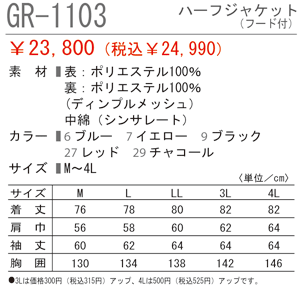 GR-1103series ハーフジャケット 防水防寒パンツ 防寒ブルゾン
