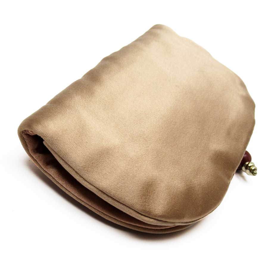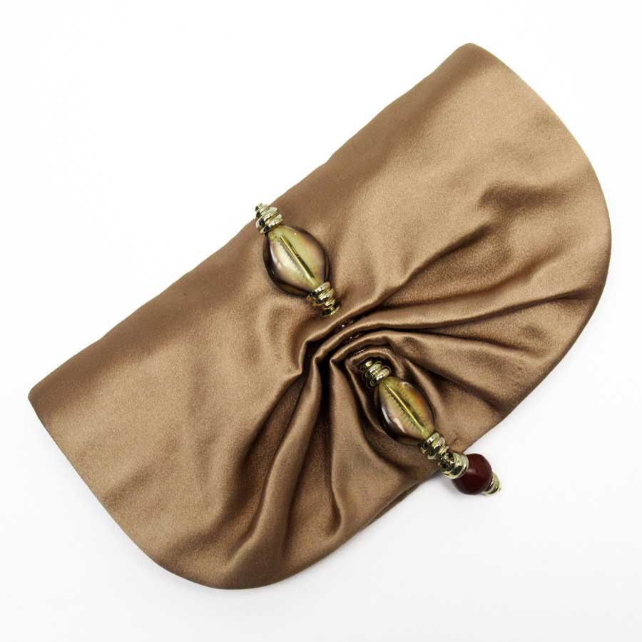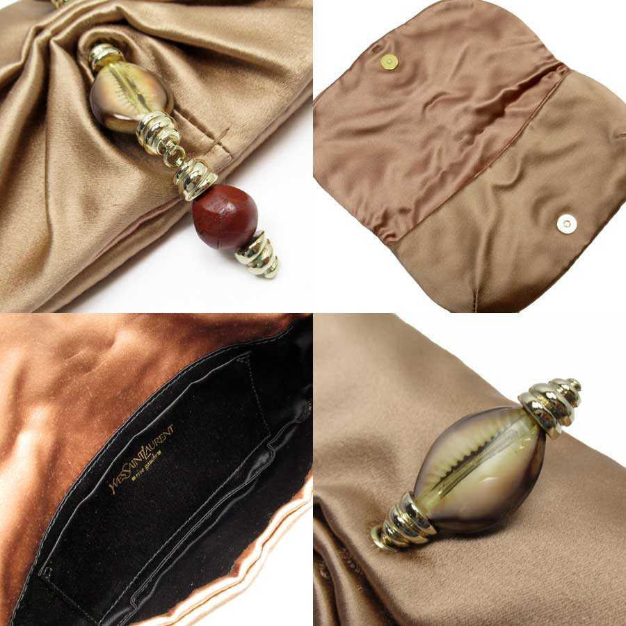 イヴサンローラン YVES SAINT LAURENT ミニクラッチバッグ ポーチ ピンクベージュxゴールド サテンxシェルxストーンx金属素材 レディース 【中古】【定番人気】 - t15967a