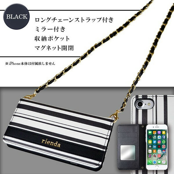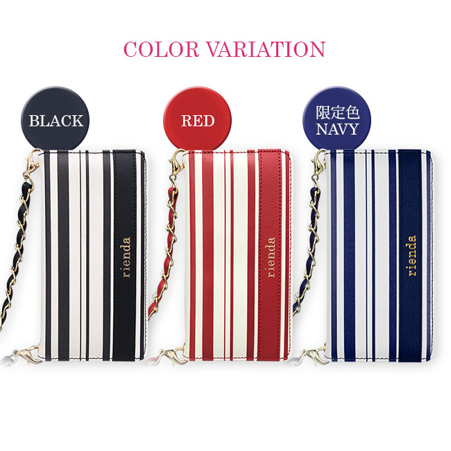 誰でも持ちやすいボーダー柄のiPhone8/SE(第2世代)/7/6/6s兼用ケースに、取り外し可能なロングストラップが付いた 肩掛け可能な手帳ケースがrienda(リエンダ)から登場! こちらのボーダー柄は鞄でも大人気なので、セットで揃えても可愛いです☆